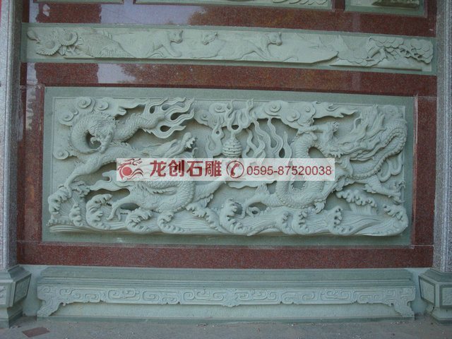 吉祥浮雕裝飾和室內(nèi)外浮雕墻藝術(shù)設(shè)計(jì)制作 高浮雕與淺浮雕兩種形式常常互相結(jié)合對(duì)應(yīng)。例如云崗石窟中的釋迎坐佛,主體近似圓雕,而背面墻上的飛天、云紋均采用低浮雕手法處理。