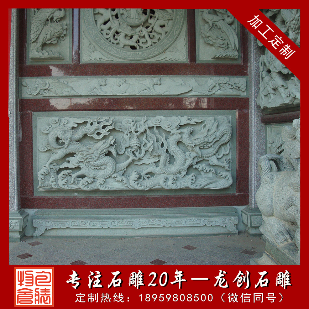 寺廟石材浮雕是將精美的圖象雕琢在石材表面,美觀大方,且極富立體感。寺廟石材浮雕作為一種人們自己創(chuàng)作設(shè)計并雕刻的手工工藝品它是最古老的文明,并留給我們現(xiàn)代人豐富的歷史文化藝術(shù)遺產(chǎn)。在石材浮雕的創(chuàng)造中它始終用獨(dú)特的手法和行為藝術(shù)形式來豐富著人們的文明歷史。