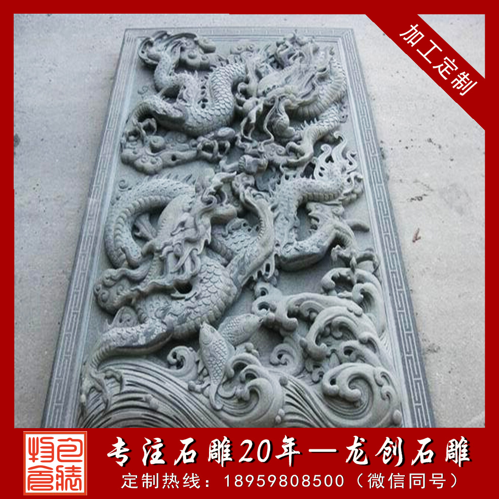 石材浮雕是用石材雕刻而成的工藝品,雕刻者在一塊平板上將他要塑造的形象雕刻出來,使它脫離原來材料的平面。浮雕是雕塑與繪畫結(jié)合的產(chǎn)物,用壓縮的辦法來處理對象,靠透視等因素來表現(xiàn)三維空間,并只供一面或兩面觀看。