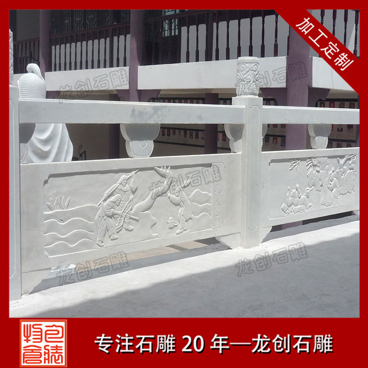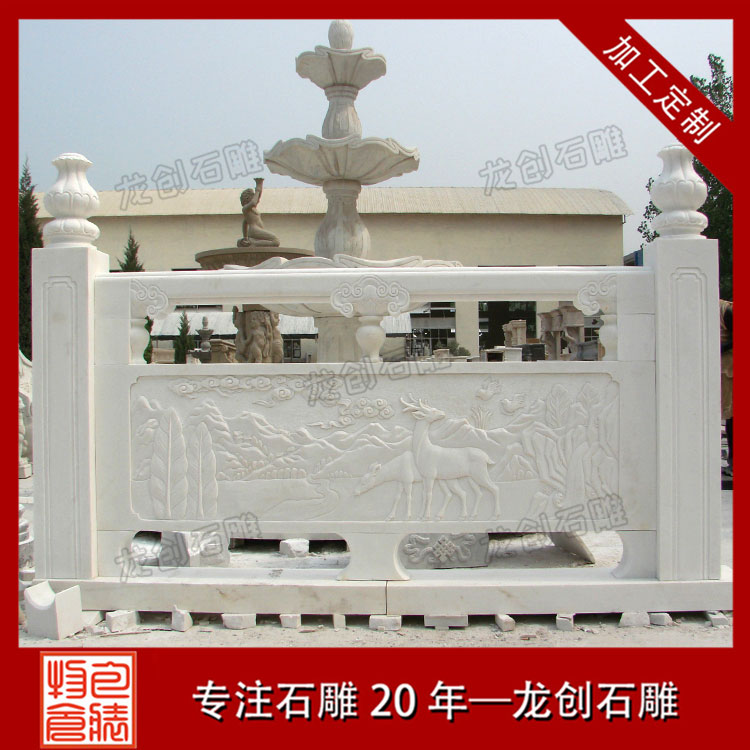 2、漢白玉欄桿的雕琢工藝:雕琢工藝的難易程度也是影響漢白玉欄桿價格的重要要素之一。一般咱們根據(jù)客戶供給的雕琢設(shè)計圖進行加工,常見的雕琢工藝有浮雕、線雕、透雕、陰雕、圓雕、鏤雕等等。有的石雕欄桿用線雕,有的石雕欄桿用浮雕,雖然規(guī)格相同,但是由于雕琢的工藝不同形成消耗的工時不同,石雕欄桿價格自然也是不一樣的。