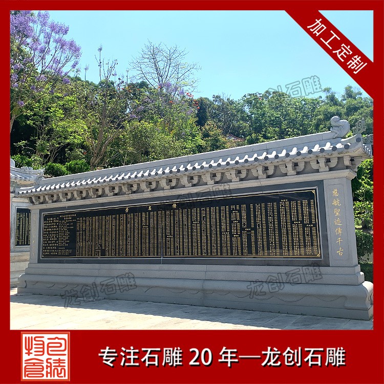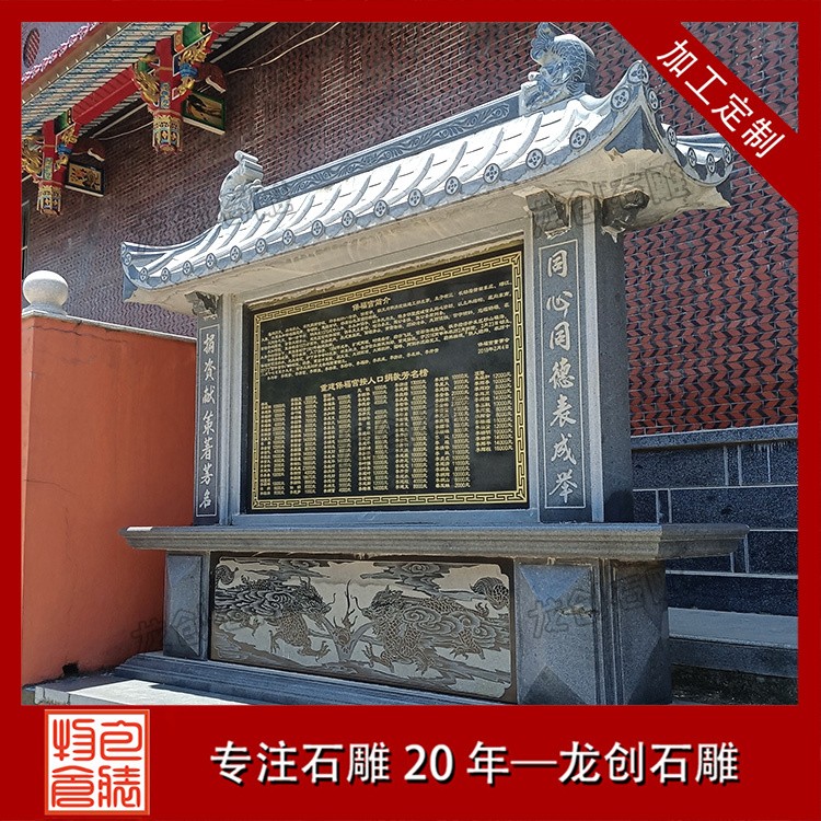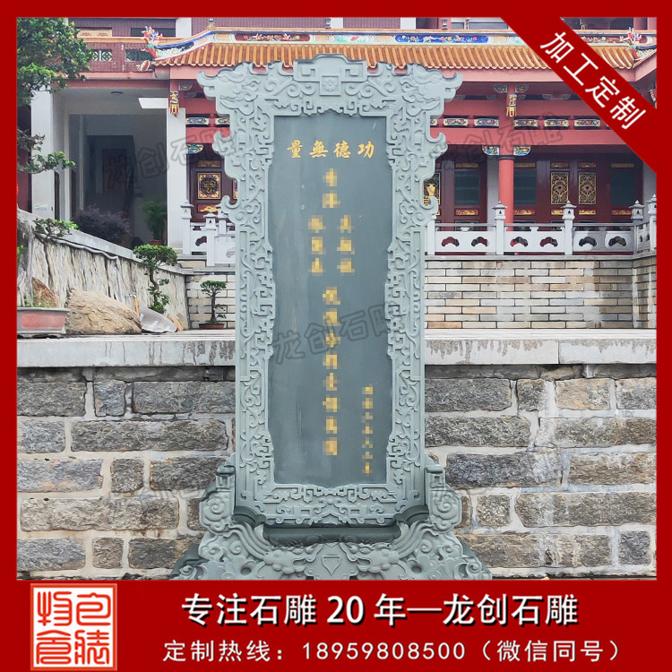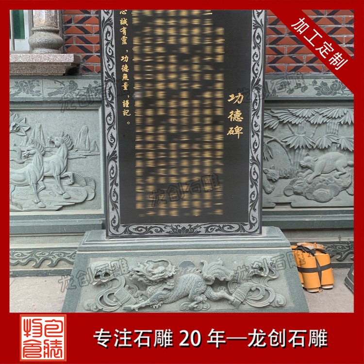 設計特點:通常由一塊長方形的石頭精心雕刻而成,上面刻有詳盡的文字內容,如表彰對象的姓名、事跡、貢獻等,以及相關的圖案或浮雕,以生動形象地展現(xiàn)功德事跡的輝煌與偉大。
