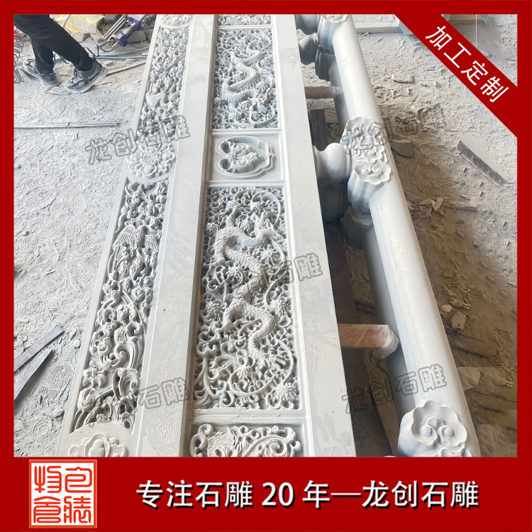 精湛絕倫的雕刻工藝,是石雕欄桿藝術靈魂的綻放。從細膩入微的線刻,到層次分明的淺浮雕,再到栩栩如生的高浮雕,每一種技法都在工匠們的手中運用自如?;ɑ軋D案嬌艷欲滴,仿佛能聞到陣陣芬芳;動物造型活靈活現,似在欄桿間嬉戲玩耍;神話傳說與歷史故事場景更是生動逼真,讓人仿佛穿越時空,沉浸在無盡的文化海洋之中。