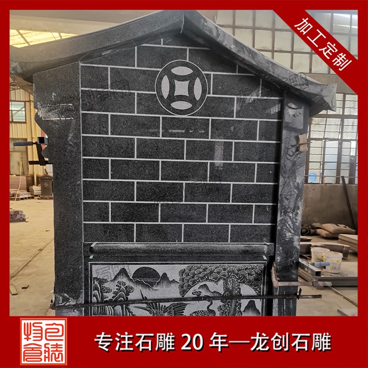 在浙江寧波的金蓮寺改造項目中,一座精美的石雕土地廟成為點睛之筆。這座土地廟采用優質芝麻黑654石材,質地堅硬,色澤溫潤。廟身的雕刻工藝精湛絕倫,高2.9米,寬1.36米,深度1.63米,整體造型古樸典雅,遵循傳統廟宇建筑風格,飛檐斗拱線條流暢,比例協調;墻體厚實,雕紋精美,線條流暢。其內部空間布局合理,土地神像安置其中,更顯威嚴。