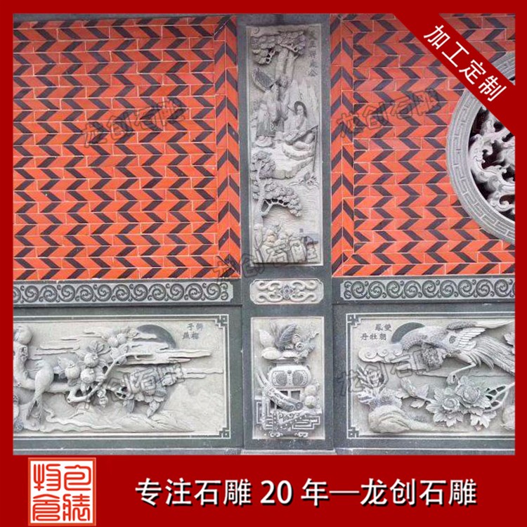 石材浮雕加工是一種悠久的工藝,利用浮雕的雕刻手法在石材表面雕刻出精致而又立體的圖案。石材浮雕屬于石雕工藝當中的一種,安裝在寺廟、祠堂或者宗祠、祖厝之類的地方的浮雕,圖案五花八門,但都有著其不同的寓意。一般祠堂浮雕有外墻墻體的浮雕,也有室內的浮雕,大多數浮雕圖案會以一些花鳥動物為主。