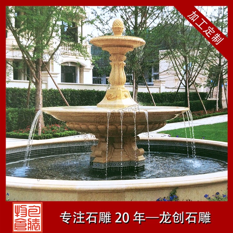 相比埃及米黃石雕水缽,黃銹石、黃金麻噴泉的特點:銹石石材在南北方都有,南方主要以福建銹石為主,黃銹石和黃金麻兩者顏色接近,均無放射性,所以對人們的健康無影響。兩者主要區別在于花色分布和色度上。黃銹石表面幾乎分布小花,分布密集,比較受客戶喜愛,其色彩黯淡、泛灰。而黃金麻花色分為大花、中花、小花,顏色呈現金黃色或暗黃,其耐腐蝕性高,不會褪色,所以不怕風吹日曬。適用于園林。