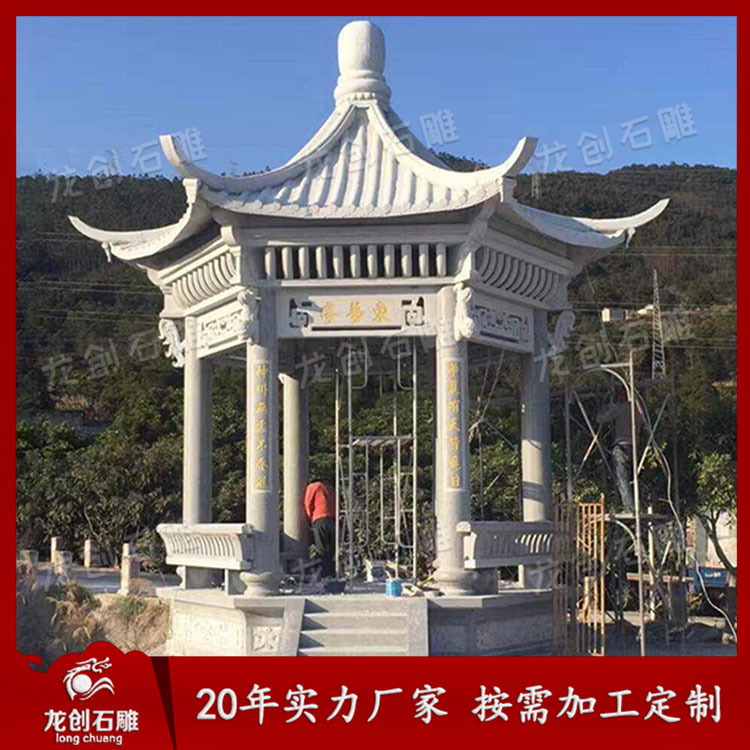總體來說石雕亭子價格與亭子選用的石材用料、雕刻工藝、規格大小有直接的關系。客戶在預算石雕亭子多少錢的時候,還要考慮石雕亭子的包裝、運輸方式、安裝難度等其他相關方面的因素。石雕亭子報價的詳細信息可以咨詢惠安專業的石雕亭子廠家龍創石雕。