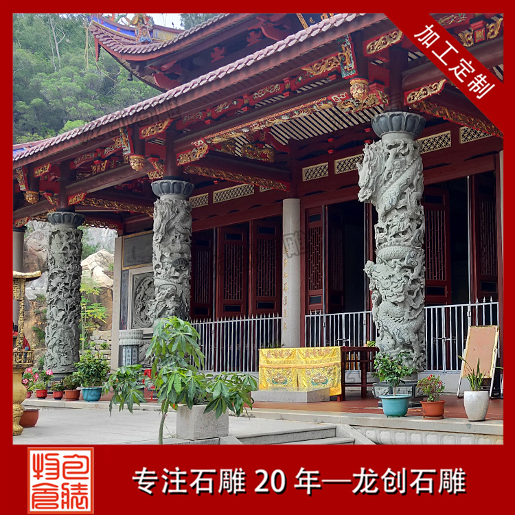 寺廟的建筑中必不可少的其中一定有龍柱石雕,已經成為寺廟的標配。當然也有資本相對差一些的寺廟會用圓柱替代,但更換成龍柱石雕也是遲早的事情。香火好的寺院不管是大雄寶殿還是天王殿或是其他殿門前,都會立上幾對龍柱。龍是中華民族的圖騰吉祥的征兆。宗教文化的發展是為了守護一部分人的信仰,也豐富人們的精神生活。宗教場所的存在,可以讓人們從中得到一些心理慰藉促進社會和諧。
