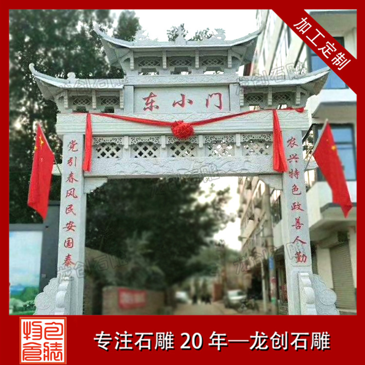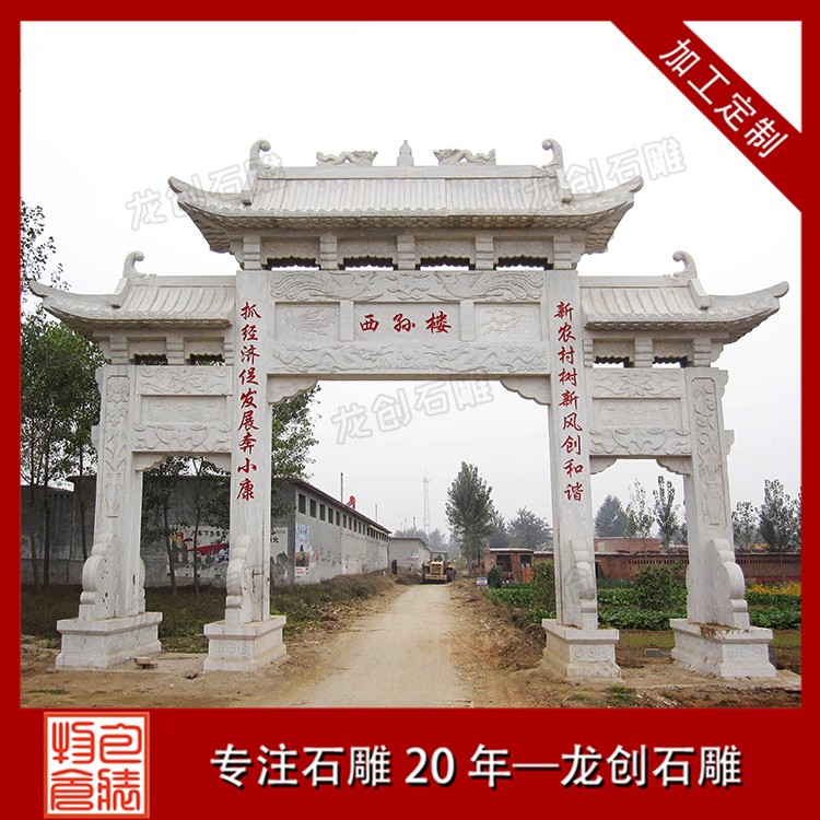 新村石雕牌樓也被稱作鄉(xiāng)村石牌樓或是村頭石牌樓及其農(nóng)村石牌樓等,新村石雕牌樓是安裝在美麗鄉(xiāng)村建設(shè)的村頭石牌樓,在打造出美麗鄉(xiāng)村建設(shè),鄉(xiāng)村達(dá)到小康水平,在美麗鄉(xiāng)村建設(shè)創(chuàng)建村頭石牌樓不但是美麗的風(fēng)景,也是一個(gè)地名標(biāo)示,村頭石牌樓還可以具有代表性功效。