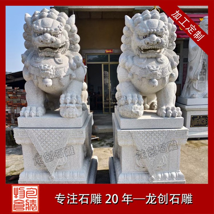 材質與工藝:這些石獅子通常由質地優良的石材雕刻而成,工藝精湛,細節處理得當。
