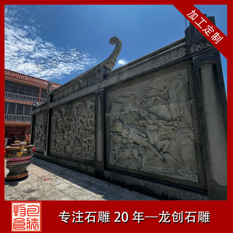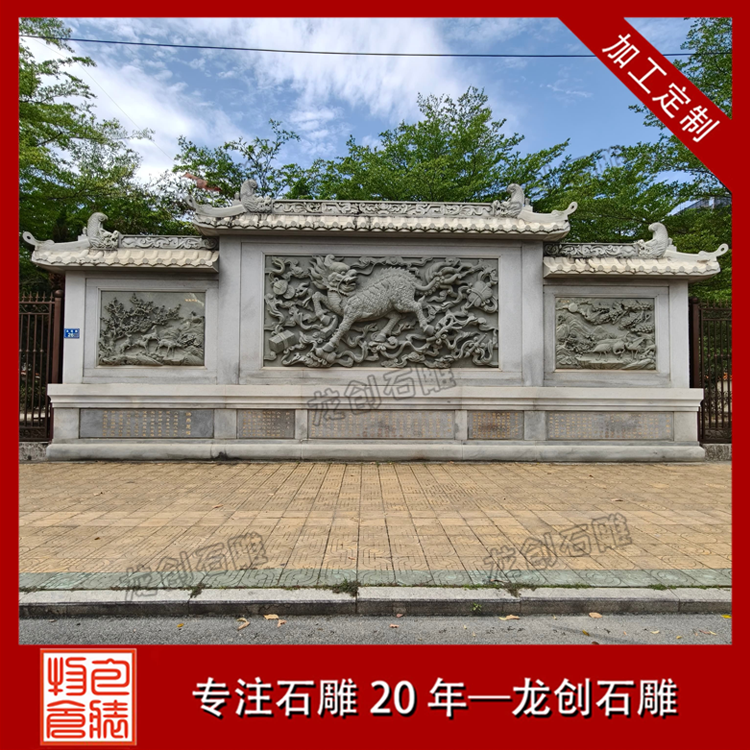 照壁雛形可追溯至漢代,早期為宮苑貴族專用;唐宋漸入寺院、官邸;明清普及至民間宗祠、大院與園林,成為身份與家風的載體。由壁座(須彌座 / 素座,承重)、壁身(主體,雕刻核心區)、壁頂(仿傳統屋頂,歇山 / 硬山 / 懸山,防雨水侵蝕)三部分組成。