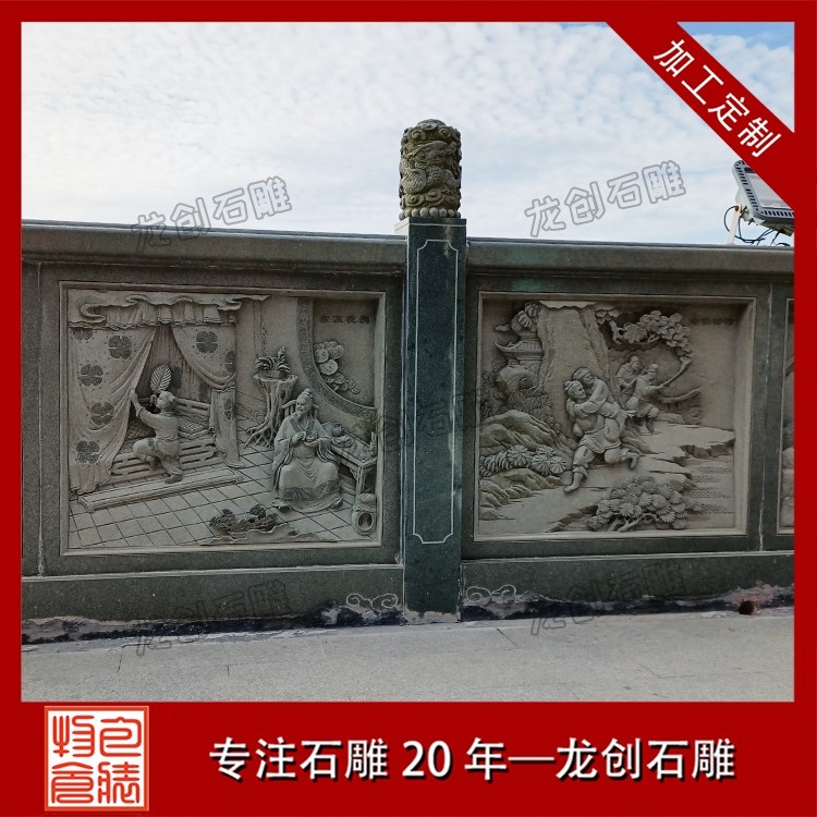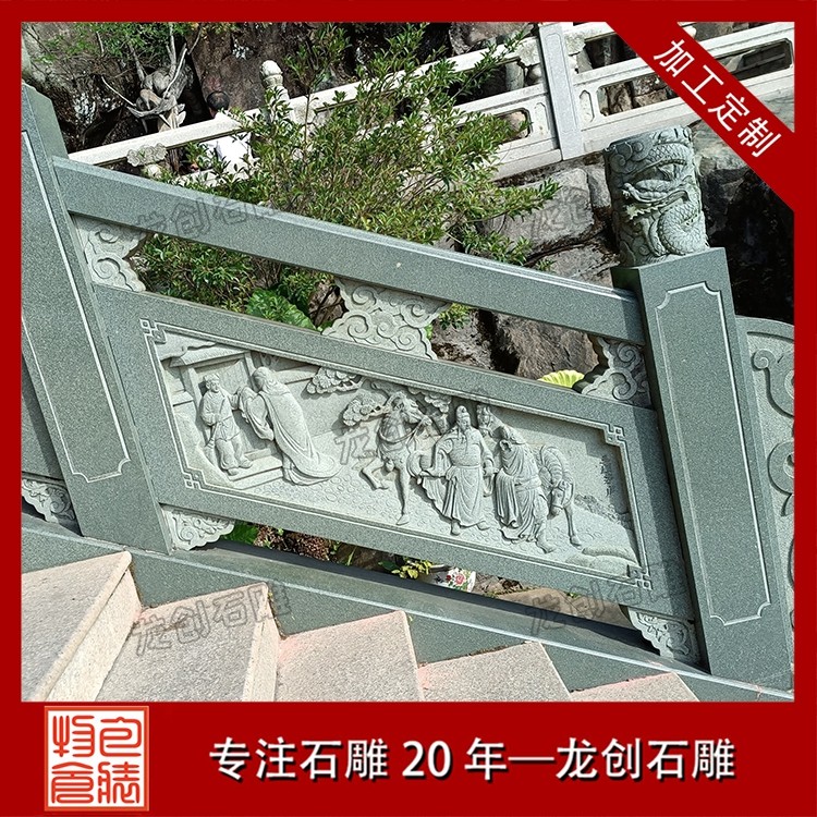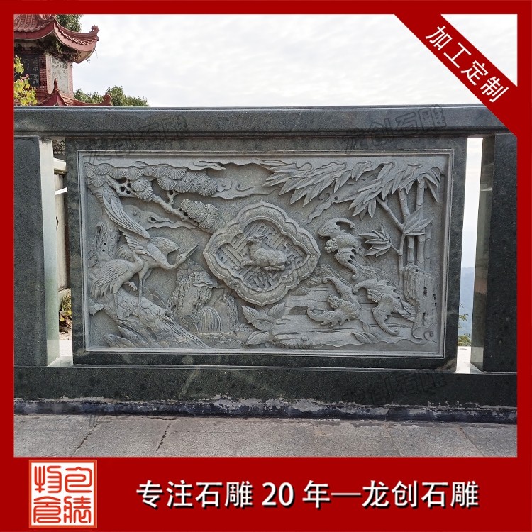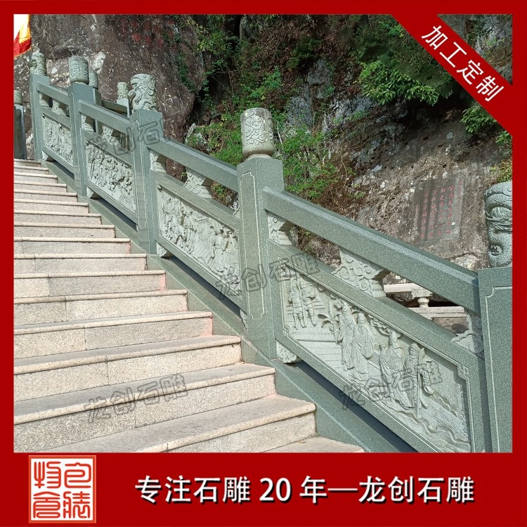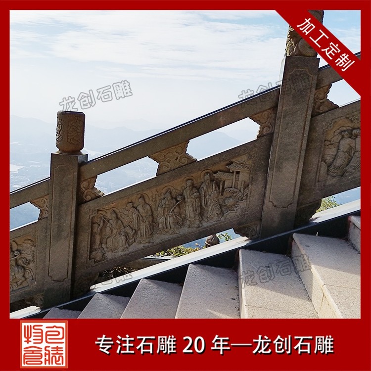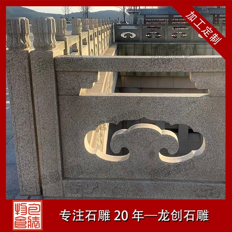 打磨與雕刻,是賦予石雕欄桿靈魂的關鍵環節。匠人先用粗磨工具去除石材表面的粗糙痕跡,再用細磨工具反復打磨,讓欄桿表面平滑細膩,觸感溫潤。雕刻環節更是考驗匠人的功力,手工雕刻與數控雕刻相輔相成,淺雕、深雕、鏤空雕等多種技法靈活運用,祥云的飄逸、花鳥的靈動、人物的神態,都在匠人的刀下被展現得淋漓盡致。每一刀都精準有力,每一處細節都精益求精,既保留了石材的天然質感,又賦予了其人文溫度。后,通過專業的拋光與防護處理,讓石雕欄桿的光澤更持久,防水防污、抗腐蝕能力更強,得以歷經歲月打磨而依舊熠熠生輝。