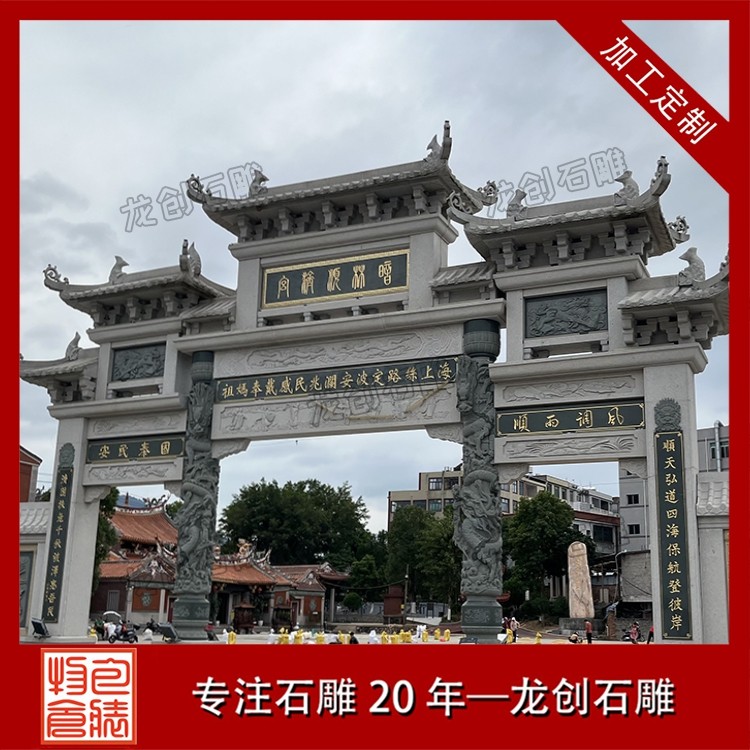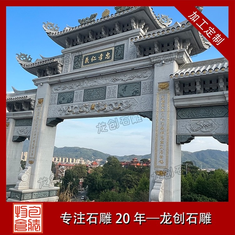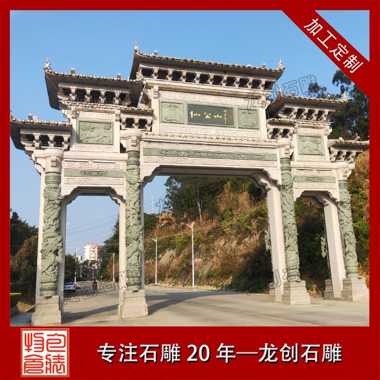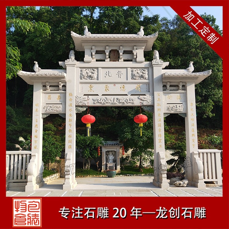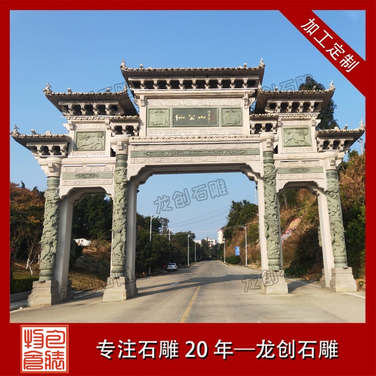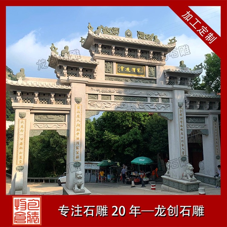 在景區,往往首先映入眼簾的便是一座氣派的石牌坊。在這里,石牌坊扮演的是 “門面擔當” 的角色 。它的首要功能是標識和引導。牌坊上的匾額題字,點明了景區的名字和意境,告訴游人“由此進入,別有洞天”。更重要的是,它是風景的序言。在設計上,景區牌坊的雕刻主題會與內部景致相呼應。