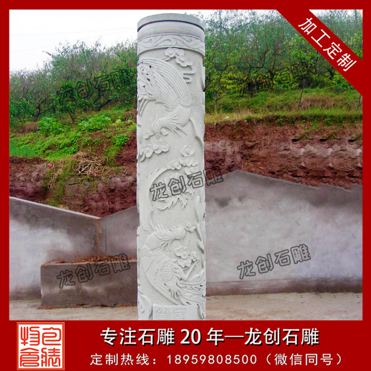 龍鳳浮雕石雕圓柱適用于宗教寺廟、園林古建、祠堂祖厝仿古建筑裝飾。