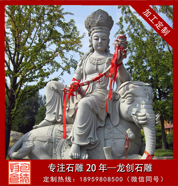 普賢菩薩,世稱為十大愿王,《法華經》指出:只要能虔誠信奉,普賢菩薩將與諸大菩薩一起出現守護此人,使他身心安穩,不受一切煩惱魔障之侵?!镀召t延命經記》指出:普賢菩薩具有延命益壽之不可思議的力量。普賢菩薩是理德和大行愿的象征,象征真理。他以智導行,以行證智,解行并進,完成求佛者的志愿,所以又稱“大行普賢菩薩”。